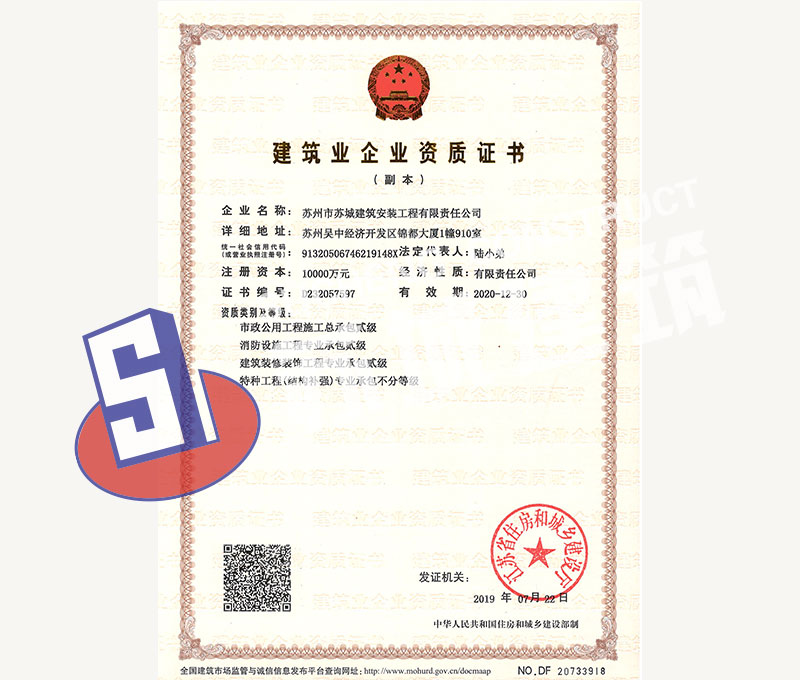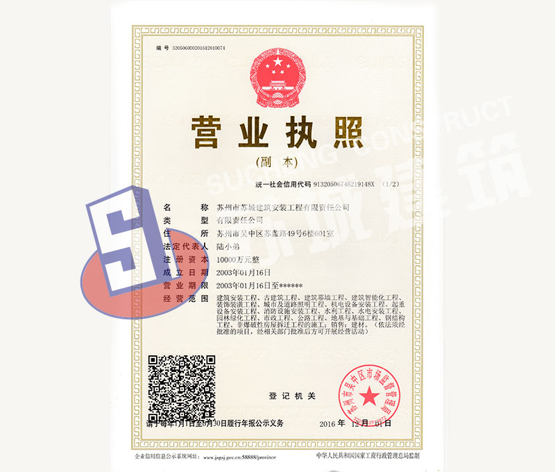 蘇州市蘇城建筑安裝工程有限責(zé)任公司,擁有主項建筑工程施工總承包一級資質(zhì),增項市政公用工程施工總承包二級資質(zhì)和建筑裝修